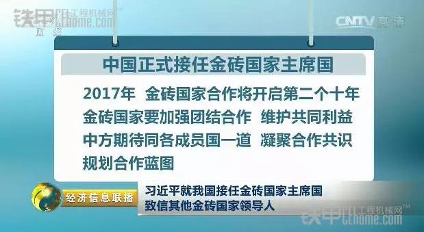 習近平強調,2017年,金磚國家合作將開啟第二個十年。展望未來,金磚國家合作將取得更大發展,也將在國際事務中發揮更大作用。當前,全球挑戰突出,國際形勢中不確定、不穩定因素增加,金磚國家要加強團結合作,維護共同利益。作為2017年金磚國家主席國,中方期待同各成員國一道,圍繞“深化金磚伙伴關系,開辟更加光明未來”的主題,凝聚合作共識,規劃合作藍圖。